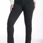 Jeans 5 poches, coupe droite, taille haute, braguette à fermeture éclair, ceinture élastiquée dans le dos, gabardine stretch, coton 62% polyester 36% élasthanne 2%.